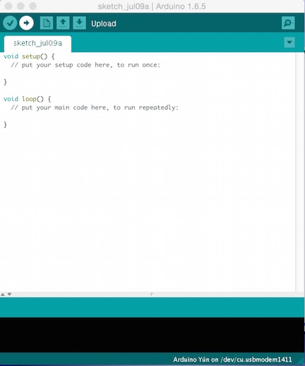 How To Install Firmata on an ArduinoBackgroundArduinos are electronic swiss army knives. They are inexpensive, tough (compared to other similar devices), they have lots of general purpose I/O (digital inputs and outputs), and they have specialized I/Os (analog inputs, PWM outputs, and I2C interfaces). There are literally thousands of different devices you can connect and control with them, and there are pluggable boards called "shields" which give Arduinos additional capabilities. If you are interested in building small control systems, you should know about Arduinos - they come in handy. Arduinos are fully programmable. Amidst all their I/Os, they have a processor with a RAM and a programmable non-volatile memory. It's a little computer complete with RAM and a little "hard disk" (the non-volatile memory). People write Arduino programs and download them into the non-volatile memory, and they just run, even after power cycling. If you are looking for a small stand alone system or for total control and flexibility, you can program Arduinos with your own specialized programs, one for every application. However, if you want your Arduino to act as an adapter between a general purpose computer and the many thousands of electronic devices Arduinos can talk to, you can download and run a single program just once - it's called Firmata. FirmataFirmata is open sourced, widely used, and has been around for years. It provides a software application interface for controlling an Arduino's I/O pins. So instead of writing programs and downloading one for every application, you download Firmata just once. From then on, your host tells Firmata what you want your Arduino to do. That's nice, because writing, downloading, and debugging Arduino programs can be a significant amount of work. The Virtual Wiring system uses Arduinos running Firmata - it's a system requirement. So you need to program all your Virtual Wiring Arduinos with Firmata - just once. Then they'll all just work. This HowTo shows you how to program Arduinos with Firmata. SetupTo program Arduinos, you need a host computer. Typically, host computers are PCs, Macs, and Linux computers. The host needs a USB port, because Arduino programming is done over USB. You will also need the Arduino Software. This is downloadable at the provided link. There are versions for Windows PCs, Macs, and Linux computers. At the time of this writing, version 1.6.5 is the latest release, so we'll be using that release in the examples below. Once you have downloaded the Arduino software, plug your Arduino into your host's USB port. Then run your Arduino Software. When you run it, it will look something like this: